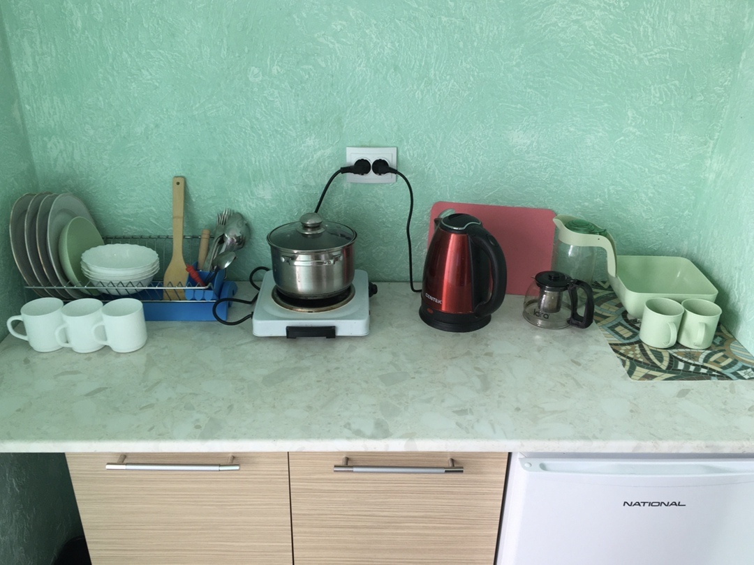 Здесь есть всё необходимое для приятного проживания: удобные кровати, кондиционеры, телевизоры, мини-кухня